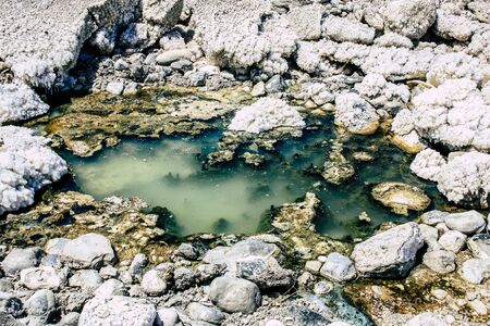 Dead Sea Israel April 21, 2018 Closeup of crystal salt from the Dead Sea in Israel