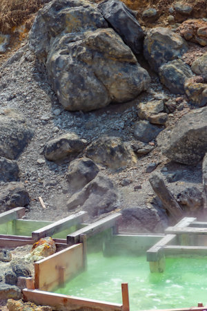 Thermal baths and hot springs in Furnas on Sao Miguel Island. Azores. Touristic attraction.