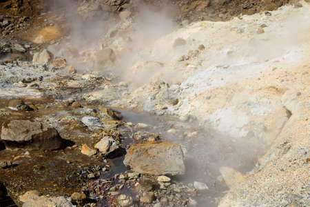 fumarole field on the slope of Mendeleev volcano, Kunashir island