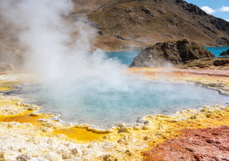 Experience a stunning natural landscape featuring steaming hot springs nestled among majestic mountains. A perfect escape into tranquility and beauty.