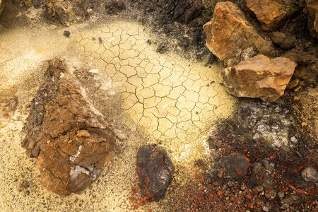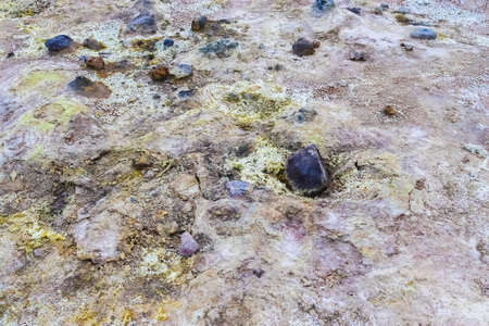 Sulfur pieces on Iozan (sulfur mountain) active volcano area, Akan National Park, Hokkaido, Japan