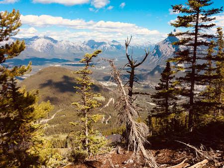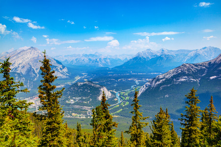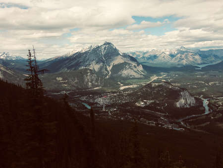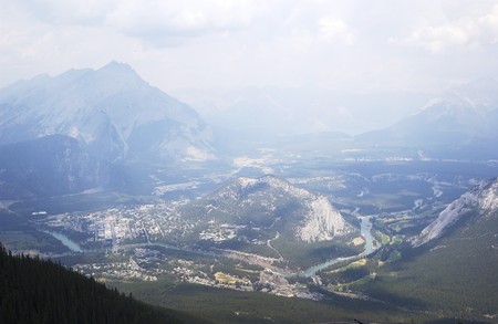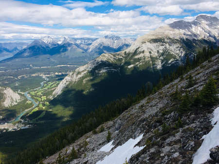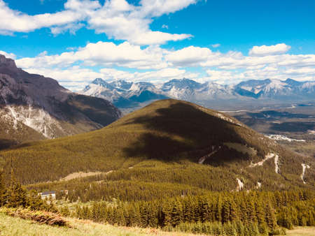 Sulphur Mountain in Banff National Park in the Canadian Rocky Mountains overlooking the town of Banff