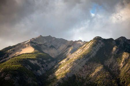 Stunning Canadian Rocky mountains twilight scene of snow capped mountain at Banff National Park in Alberta, Canada. View from Banff Gondola Sulphur Moutain.