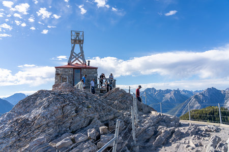 Alberta, Canada - SEP 10 2020 : Sulphur Mountain Cosmic Ray Station National Historic Site in summer. Sulphur Mountain summit. Banff National Park.