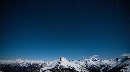 Night view of snow covered mountains and starry sky. Caucasus, Russia