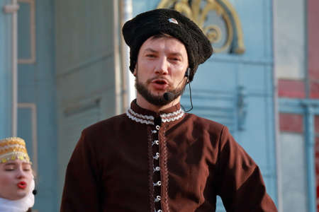 Pyatigorsk, Russia - November 4, 2017: Portrait of the Cossack Choir singer close-up. Festival in honor of National Unity Day in Tsvetnik Park in Pyatigorsk, Stavropol Region, Russia