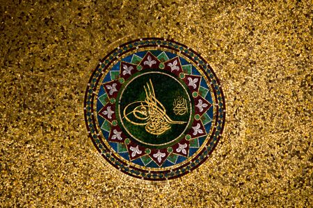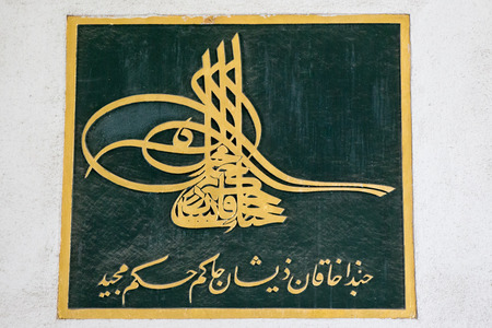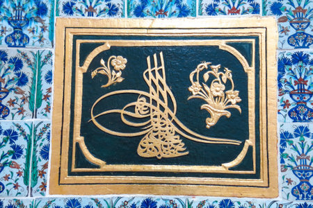 Arabic script, named tughra, in a Ottoman tiles. Topkapi Palace, Istanbul, Turkey.
