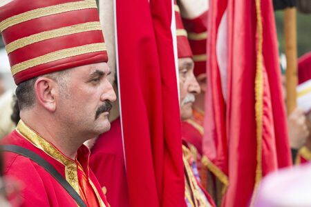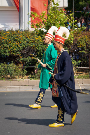 Ankara/Turkey - August 30 2019: Soldiers in Ottoman uniforms parades