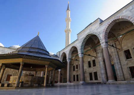 ISTANBUL, TURKEY - JULY 26, 2019: Building of Suleymaniye Mosque (Ottoman imperial mosque) in city of Istanbul, Turkey