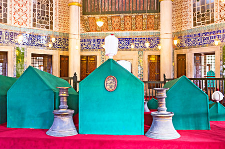 ISTANBUL, TURKEY - JANUARY 13, 2015: The sarcophagi in tomb of Mehmet III, on January 13 in Istanbul.