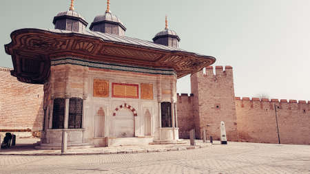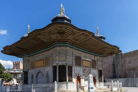 ISTANBUL, TURKEY - JULY 26, 2019: Sultan Ahmet III Fountain in city of Istanbul, Turkey