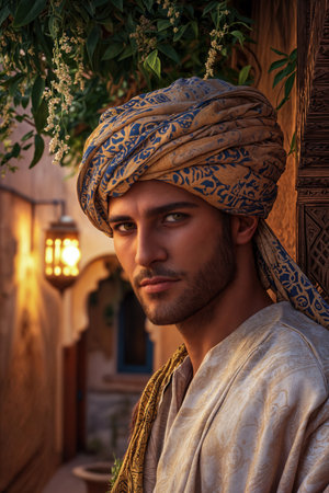 Portrait of a handsome young man with a turban on his head