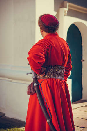 Portrait of a man in a medieval costume. Retro style and historical clothes concepts. Ukrainian Men's fashion of the 18th century