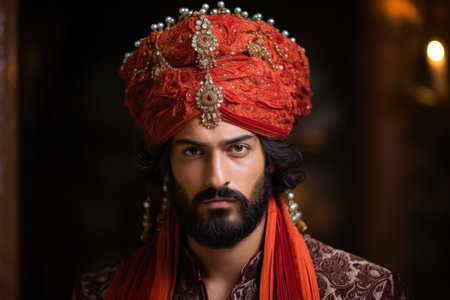 Portrait of a handsome man wearing turban and scarf in the interior