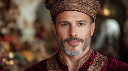 Regal man in ornate traditional clothing