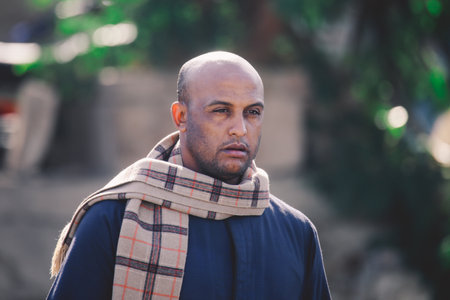 Luxor, Egypt - November 07, 2021: Close up Portrait of the Local Egyptian Old Man in Traditional Clothes