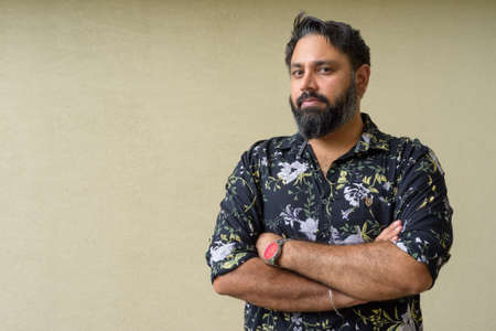 Handsome Indian man posing in an urban context. Street fashion and style.