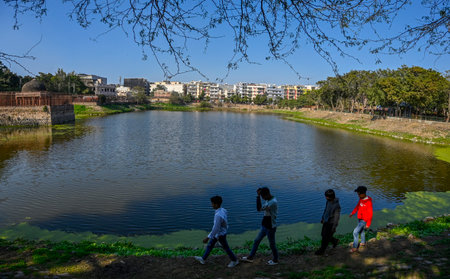 NEW DELHI, INDIA - FEBRUARY 9: A view of Hauz-e-shamshi near Jahaz Mahal at Mehrauli on February 9, 2024 in New Delhi, India. (Photo by Raj K Raj/Hindustan Times)