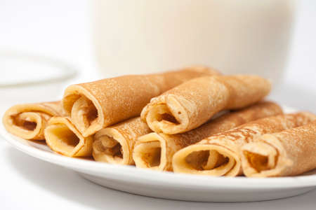 Thin pancakes with cottage cheese. Healthy traditional breakfast concept
