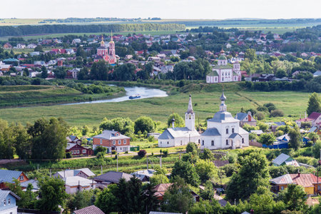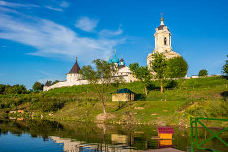 SERPUHOV, RUSSIA - AUGUST 2017: Vysotsky monastery (Vysotskiy monastyr). Orthodox monastery in Serpukhov. View of the walls of the monastery