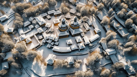 Generative AI : Aerial view of Bodmin Beacon after snow fall Bodmin Cornwall United Kingdom