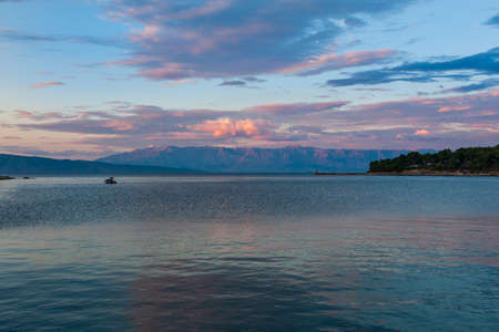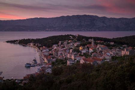 Dusk in Fisherman harbor and tourist village Povlja on north east on Island Brac in Croatia