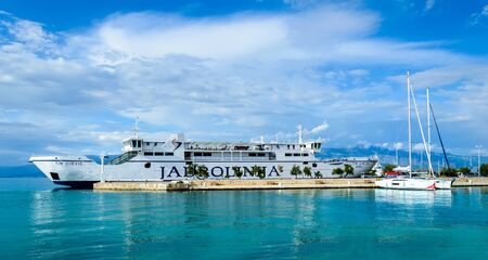 Ferry Boat sail into harbor Supetar on Brac island in Croatia
