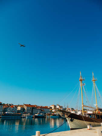 HVAR, CROATIA - May 20, 2016: A high angle shot of boats in a small port in Hvar city in Croatia