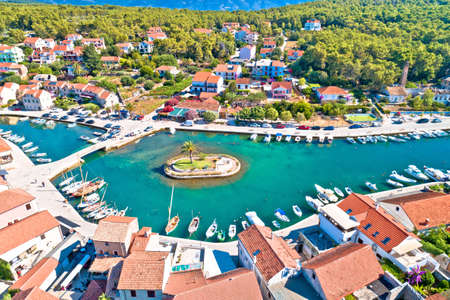Town of Vrboska small palm island aerial view, Hvar island, Dalmatia archipelago of Croatia