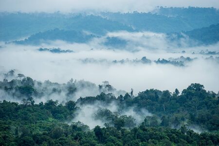 Morning mist over the lake in the morning at Khao Yai National Park, Thailand