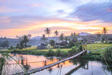 Beautiful morning view indonesia Panorama Landscape paddy fields with beauty color and sky natural light