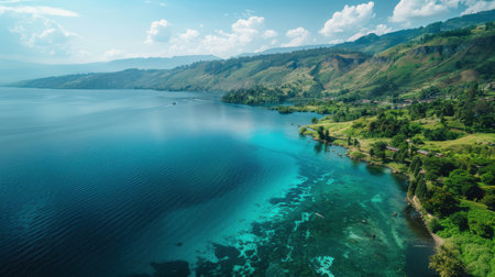 panoramic beauty of the landscape of Lake Toba, North Sumatra, Indonesia.