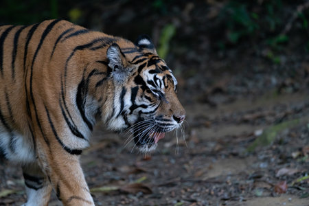 Sumatran Tiger in the forest, Thailand. (Panthera tigris altaica)