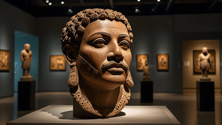 Exhibit of ancient african sculptures showcasing intricate craftsmanship