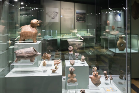 Collection of prehistoric pottery and figurines at Archaeological Museum in Sofia