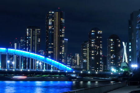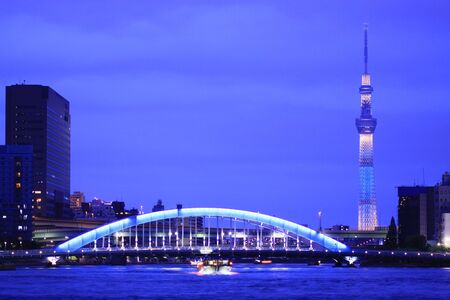 Night at the Katsuki Bridge over the Sumida River in Tokyo