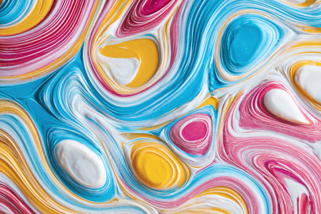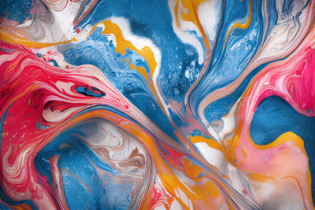 Abstract multi-colored paint background. Acrylic texture with marble pattern. Wallpaper. Mixing paints. Modern art.
