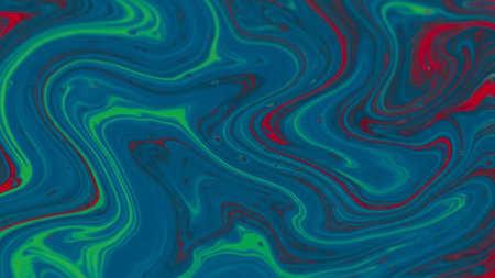 Abstract pattern of swirling blue, green, and red paint creating a fluid, marbled effect.