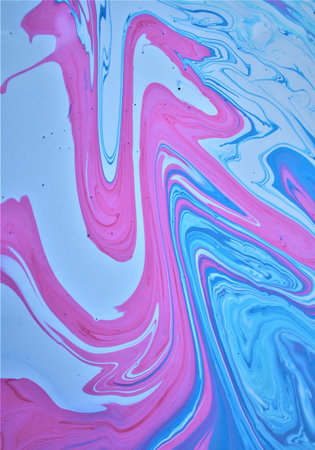 Abstract background of acrylic paint in blue and pink tones. Liquid marble texture