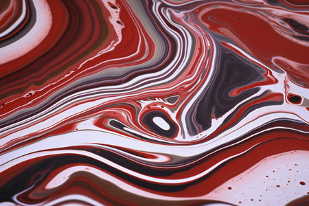 Abstract background of acrylic paint in red and black tones. Liquid marble pattern.
