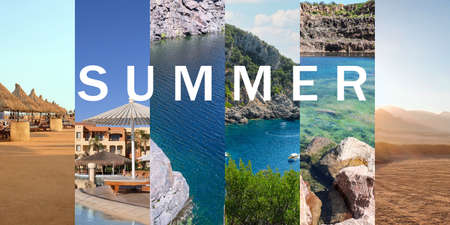 Summer collage with beautiful landscapes of resorts