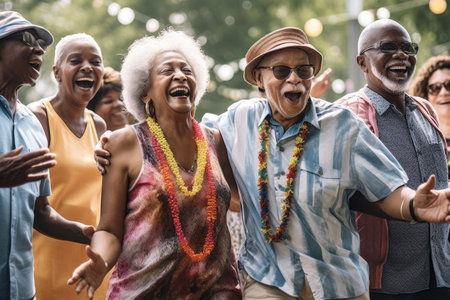 shot of a group of seniors having fun outside at an event, created with generative ai