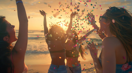 Joyful Beach Party Celebration with Friends at Golden Hour