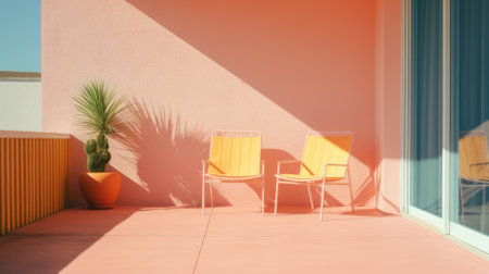Pink lounge chairs on sunny terrace background, AI Generated