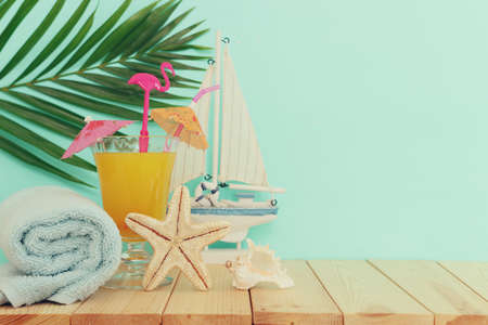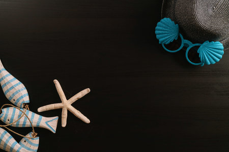 Tropical vacation and summer travel image with sea life style objects. Top view