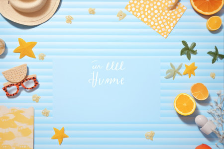 Sizzling Summer Delights: A Vibrant Note with Beach Dreams and Sunny Sensations on Striped Background --ar 3:2