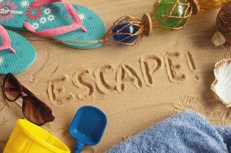 Summer ; written in the sand with hat and sunglasses ,Studio shot