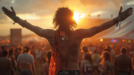 An Energetic crowd celebrating at vibrant outdoor music festival
