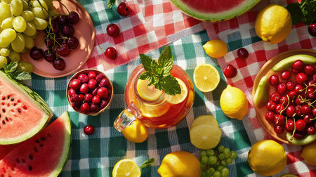 close-up of refreshing fruit slices on a picnic table, created with generative ai