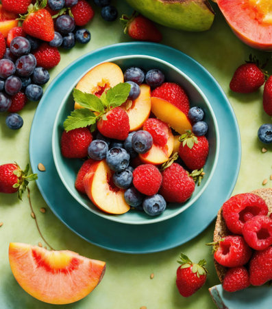 Fresh berry fruit bowl, healthy gourmet dessert generated by artificial intelligence